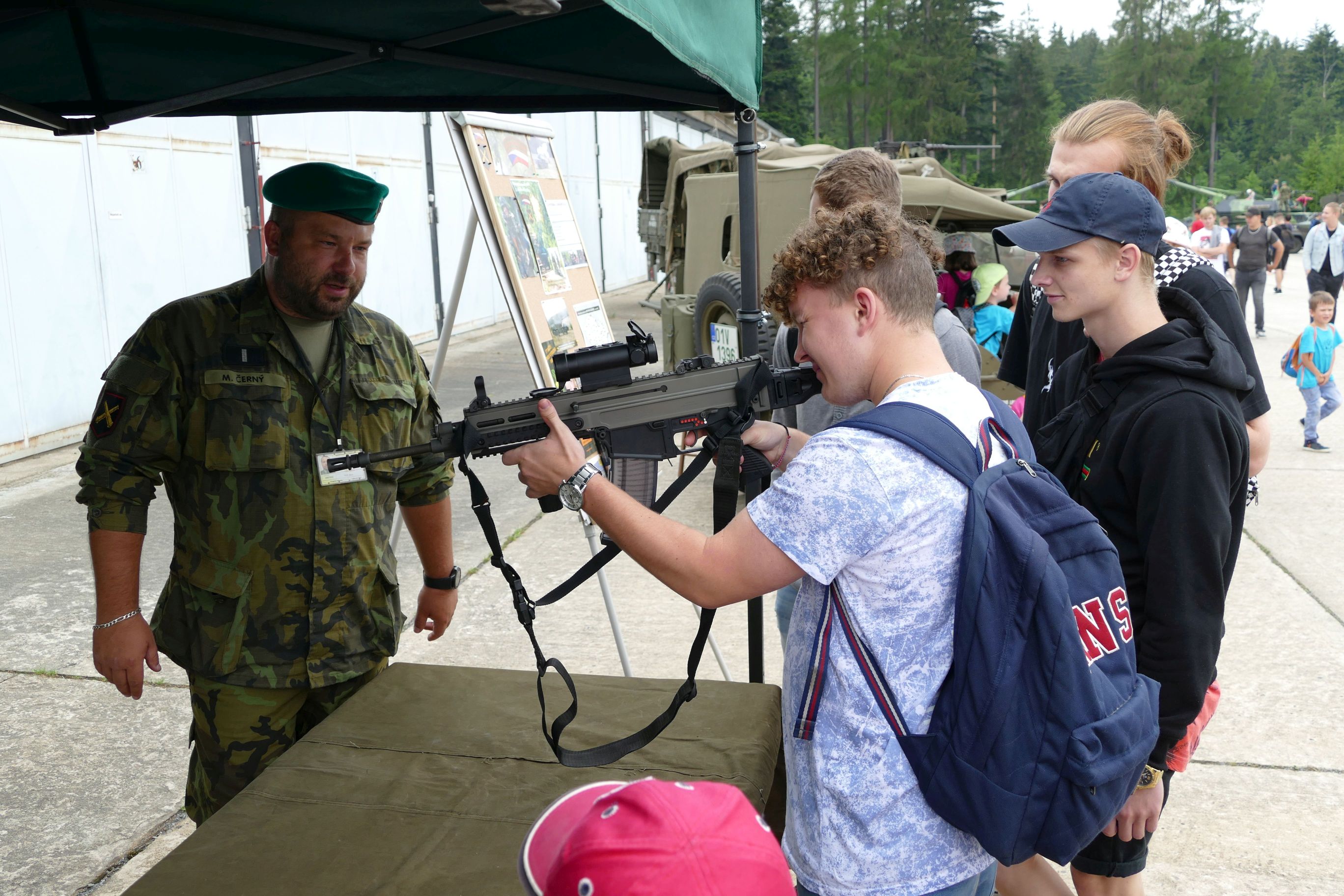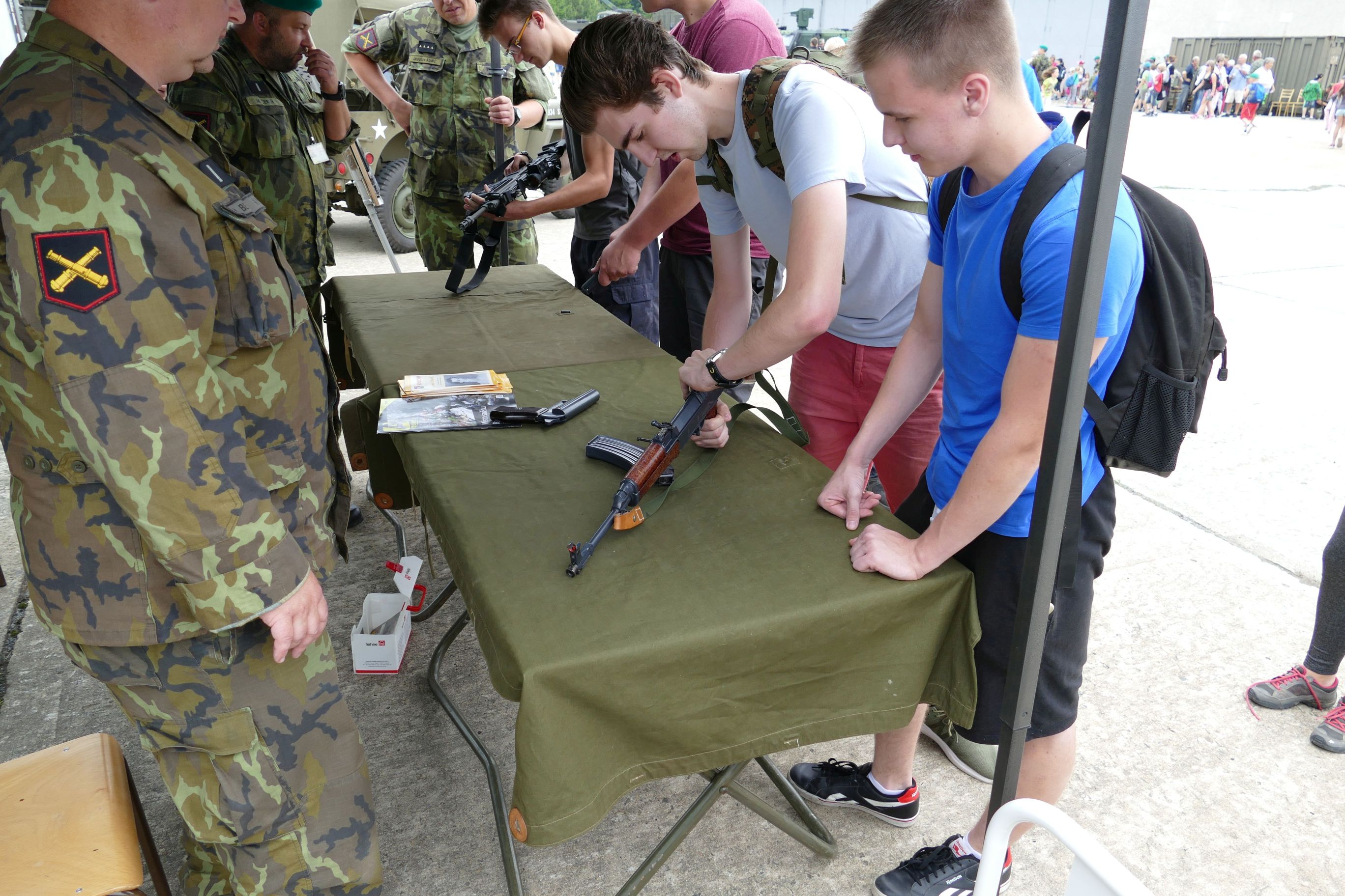 Nemohly chybět ruční zbraně. Moderní útočné pušky Bren, pistole ČZ a belgické kulomety FN, doplňovala ukázka starší výzbroje, reprezentovaná tradiční „osmapadesátkou“ a odstřelovací puškou SVD Dragunov. Příslušníky aktivních záloh dva ze studentů dokonale překvapili, provedením rozborky „kosy“ z jejich arzenálu.