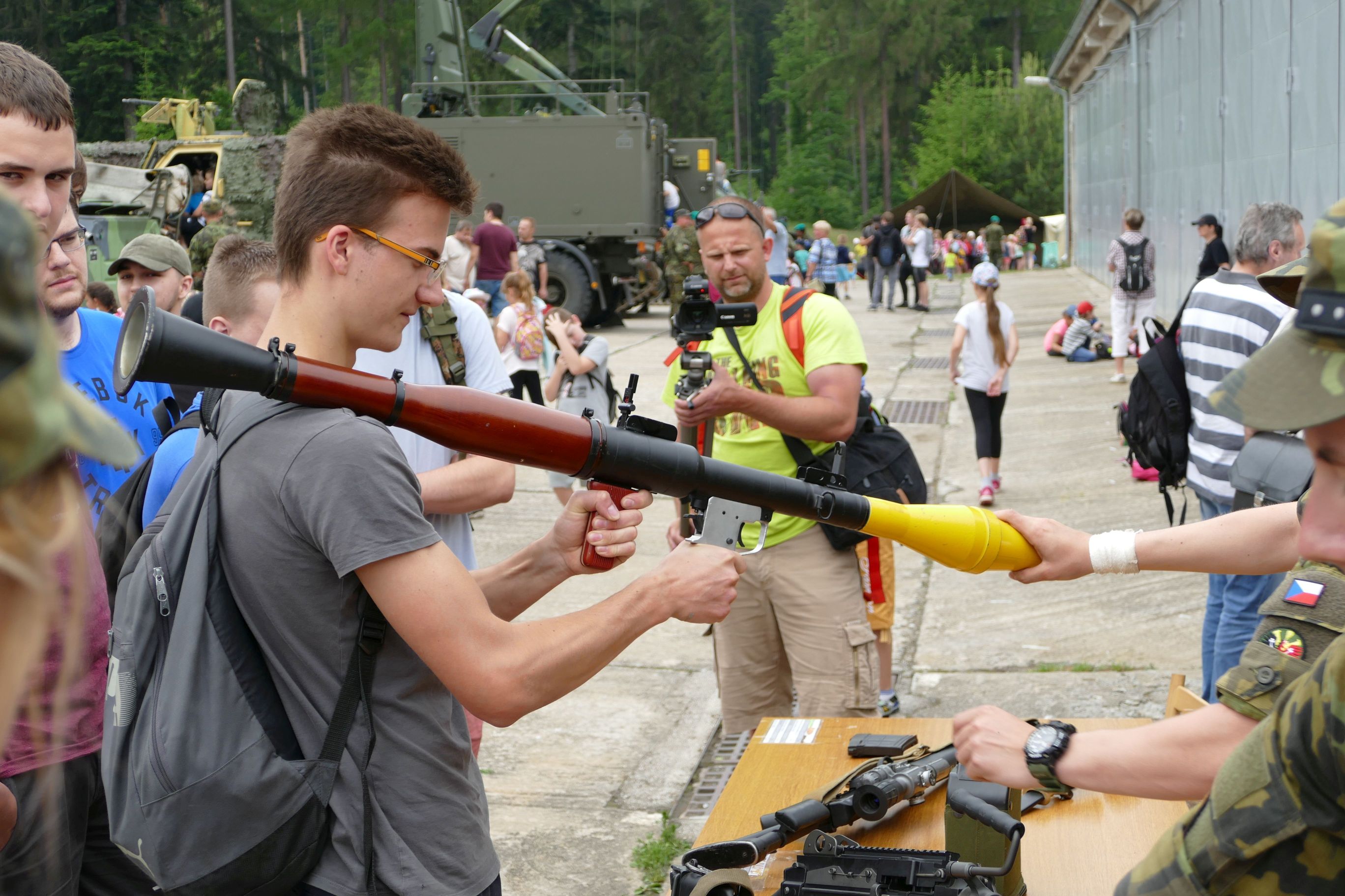 Odvážlivci si mohli potěžkat také legendární RPG-7. Na první pohled nic moc, ale při manipulaci se docela pronese. Vojenská policie doplnila tento arzenál ještě brokovnicí.
