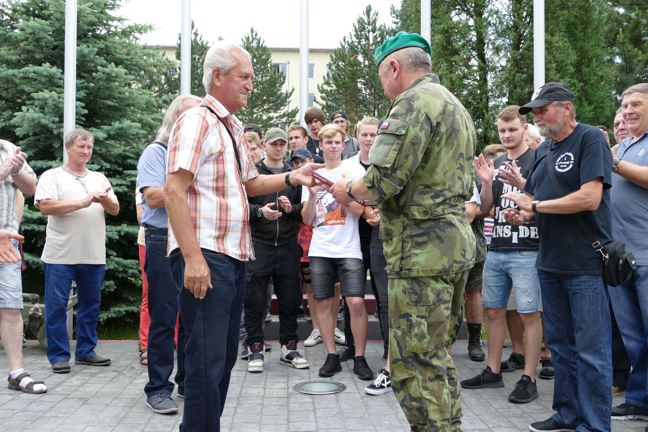 Ing. Jiří Beneš předává knihu veliteli útvaru.