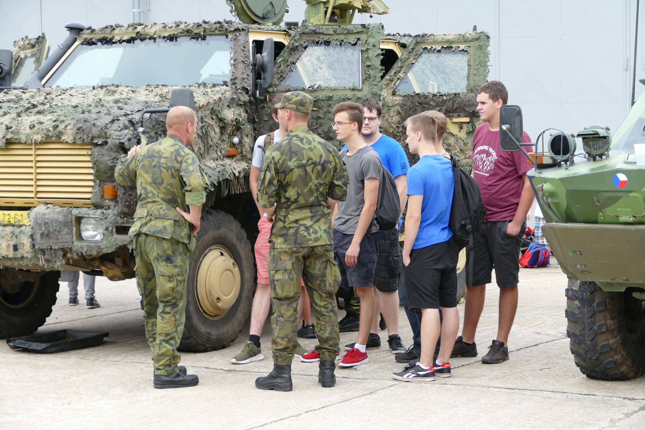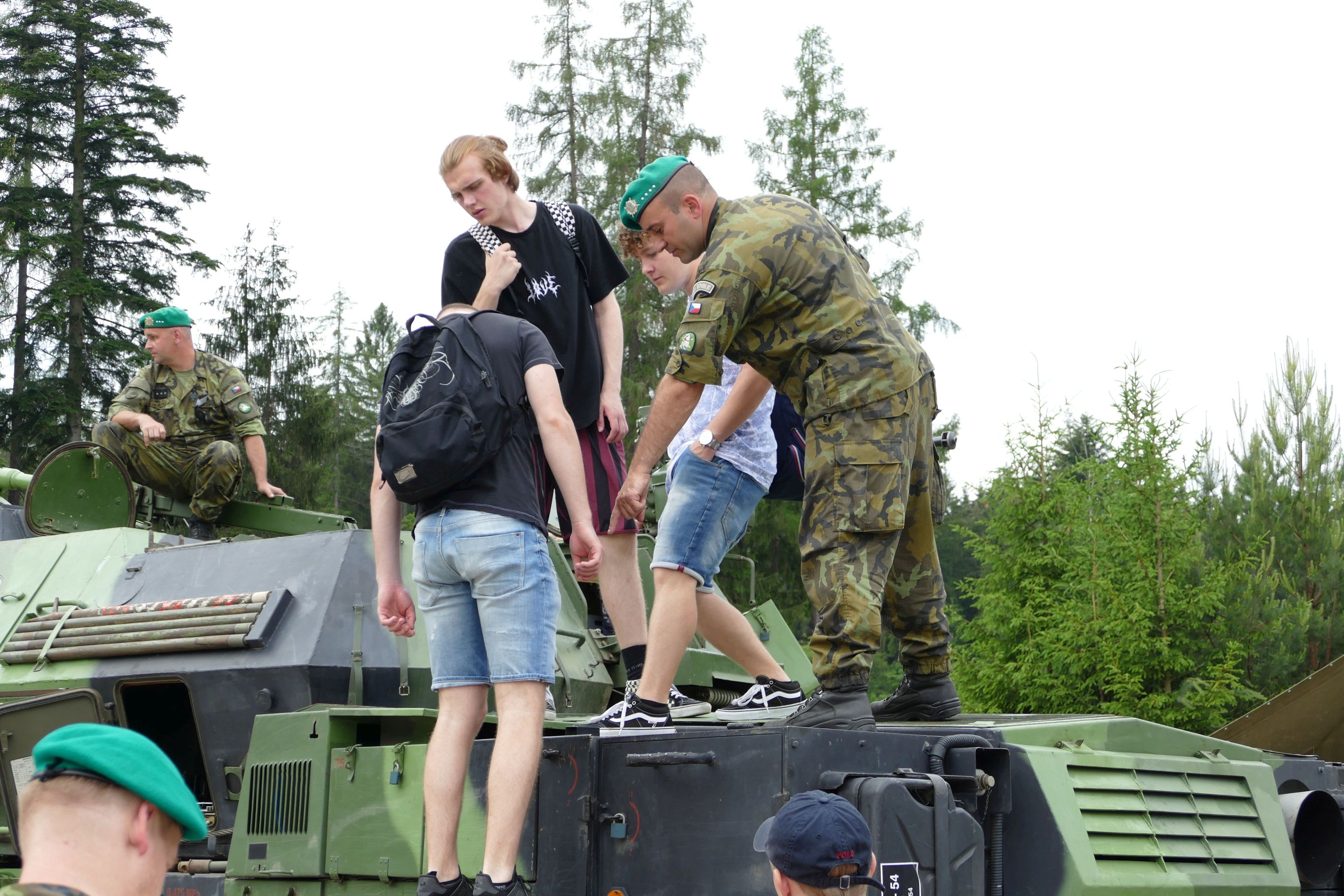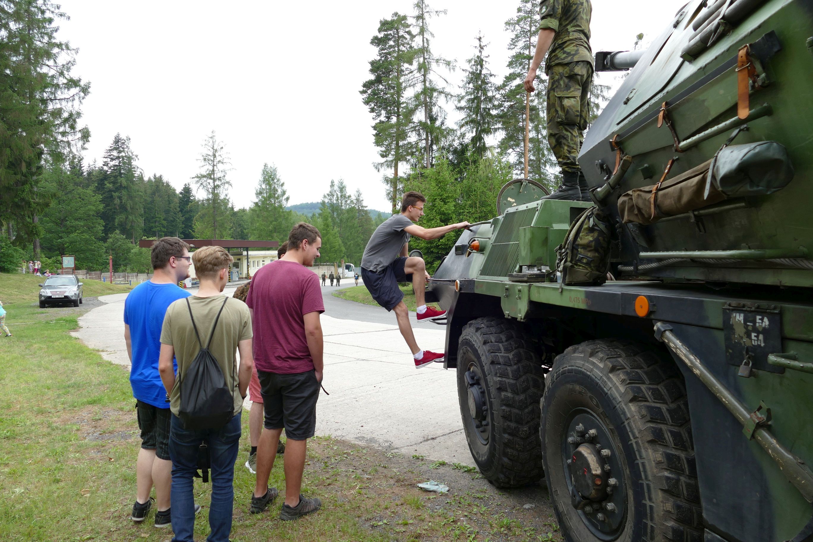 Na houfnice bylo možné si rovnou vylézt. Případně usednout do kabiny řidiče, čehož někteří ze studentů hned využili. Kromě toho si zájemci mohli na vlastní kůži vyzkoušet pracovní podmínky obsluhy houfnice v otočné věži.