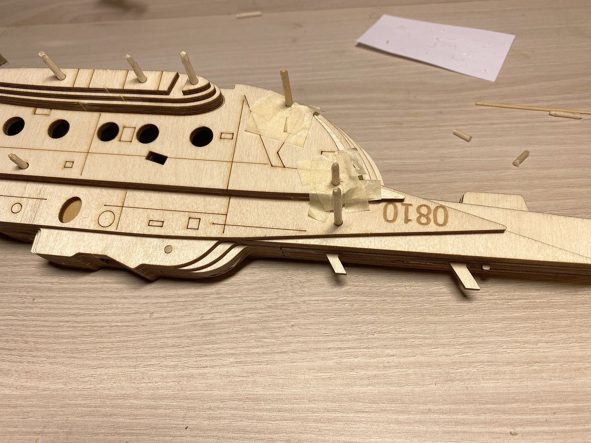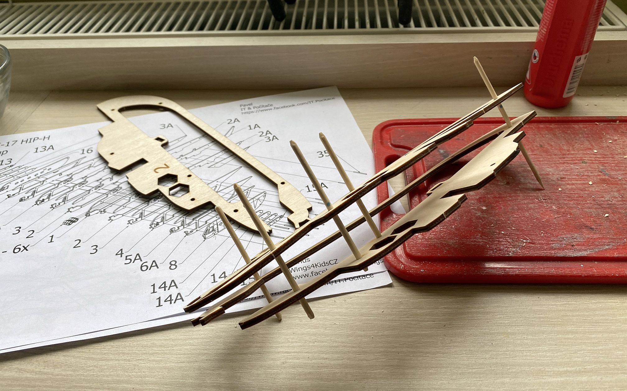 Ke slepení stačí běžné disperzní lepidlo. V mém případě Herkules Expert. Hodně času jsem věnoval stavebnímu návodu. Přece jen dřevěné modely nestavím. Drobnou záludností je použití špejlí.