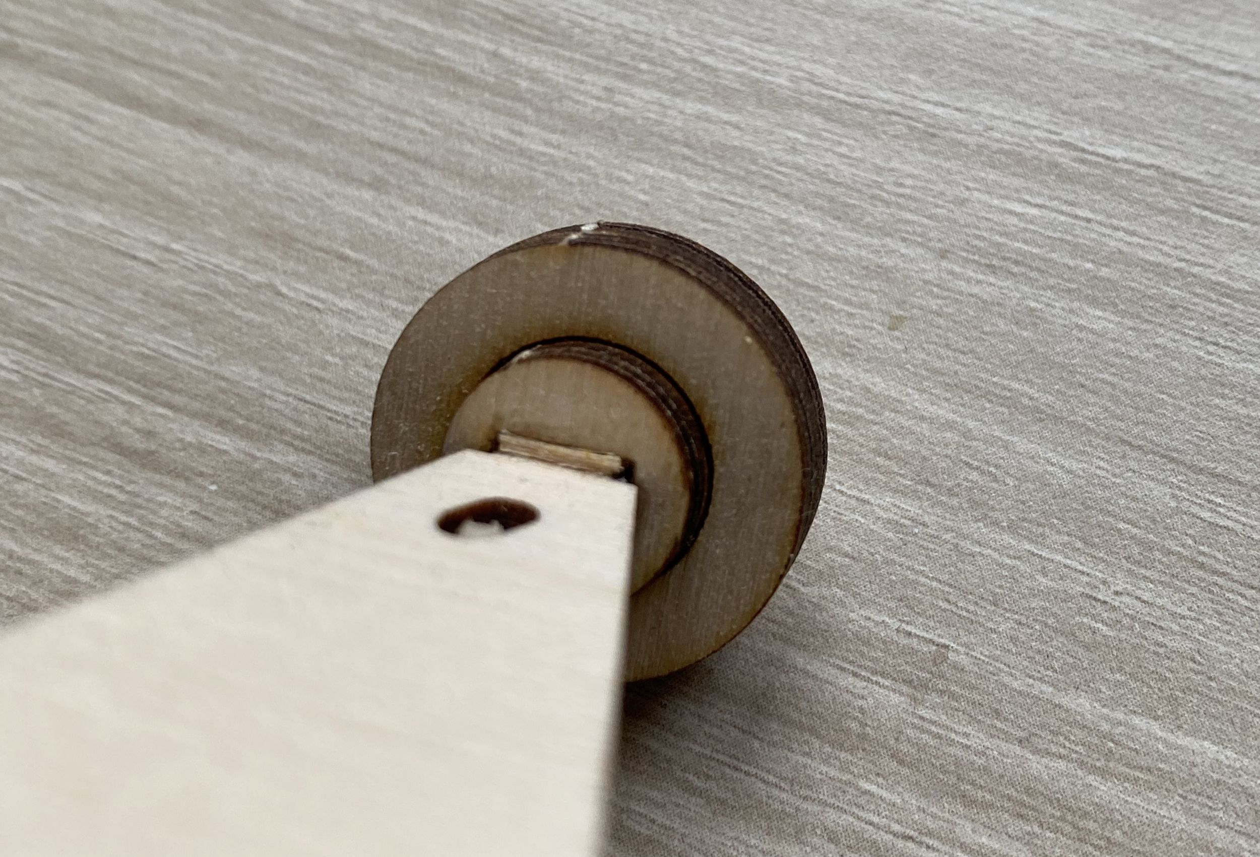 Vertikální vzpěra podvozku vyrobená ze špejle