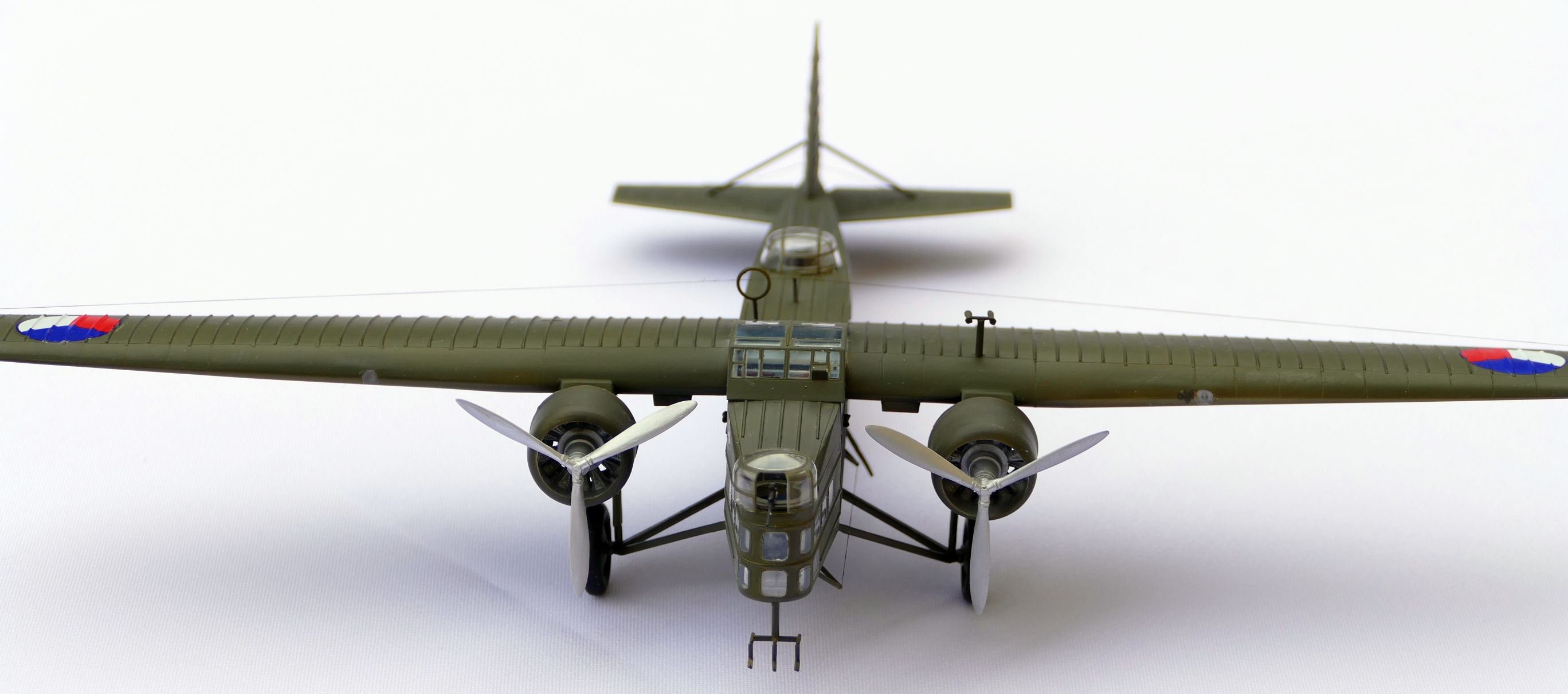 Navzdory měřítku se již na první pohled jedná o pořádný kus éra. Rozpětí modelu je rovných 31,2 cm, délka pak 22,3 cm. Při focení jsem si dobře všiml poměru velikosti oken například ke směrovému kormidlu. Předloha nepatřila rozhodně mezi drobečky, čemuž odpovídá její primární určení.