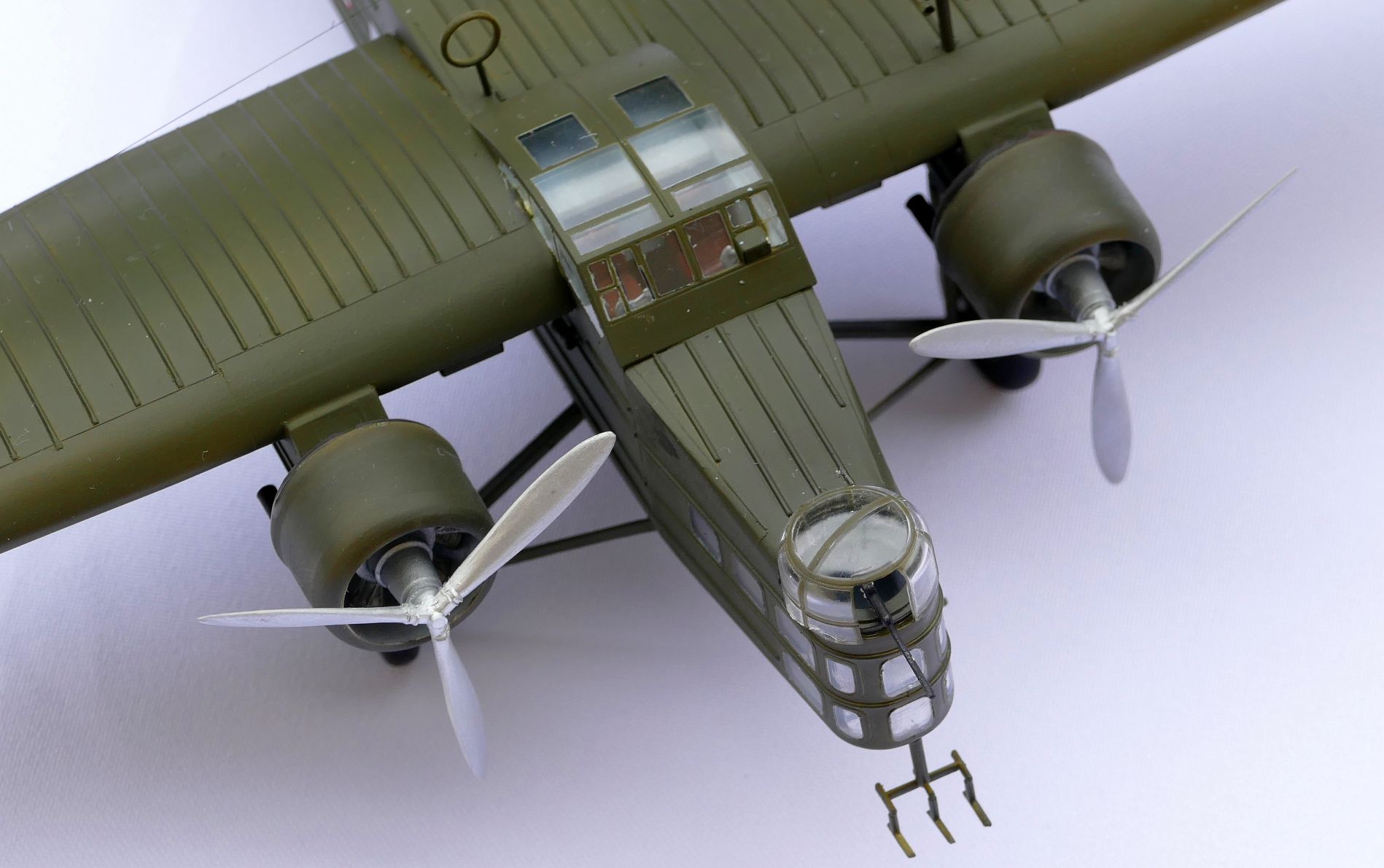 Model samozřejmě prošel patinovacími technikami imitujícími olétaní a vlivy počasí na povrch letounu. Jan Hanzlíček z KPM Kaznějov okomentoval svoji práci následujícími slovy: „Stavba embéčka probíhala vcelku pohodově bez větších záludností. Trochu jsem si vyhrál některými drobnostmi. Použité obtisky sedly bez problémů. Navzdory větším rozměrům šlo vše pěkně od ruky. Model ovšem není určen pro úplné začátečníky. Doporučuji pro středně zkušené modeláře.“