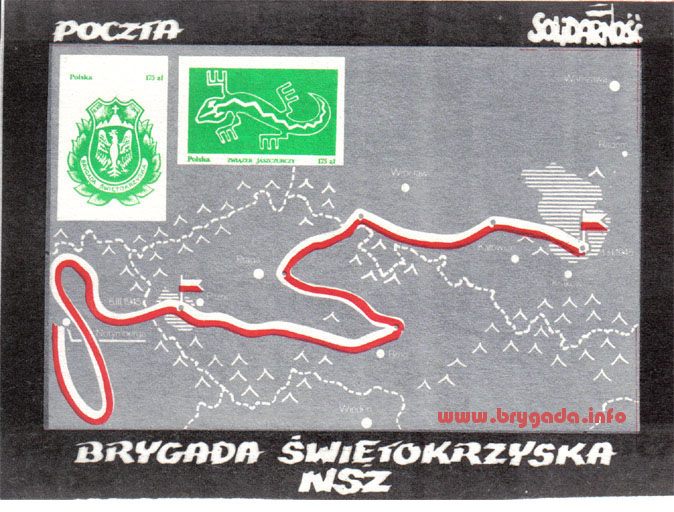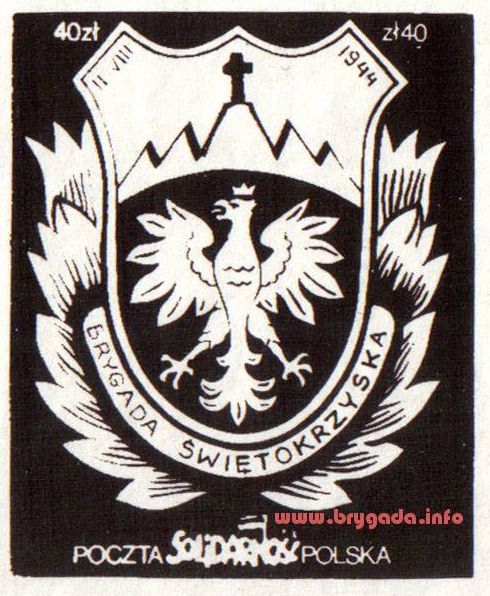 Znak Svatokřížské brigády na poštovní známce odborového hnutí "SOLIDARITA". (1)