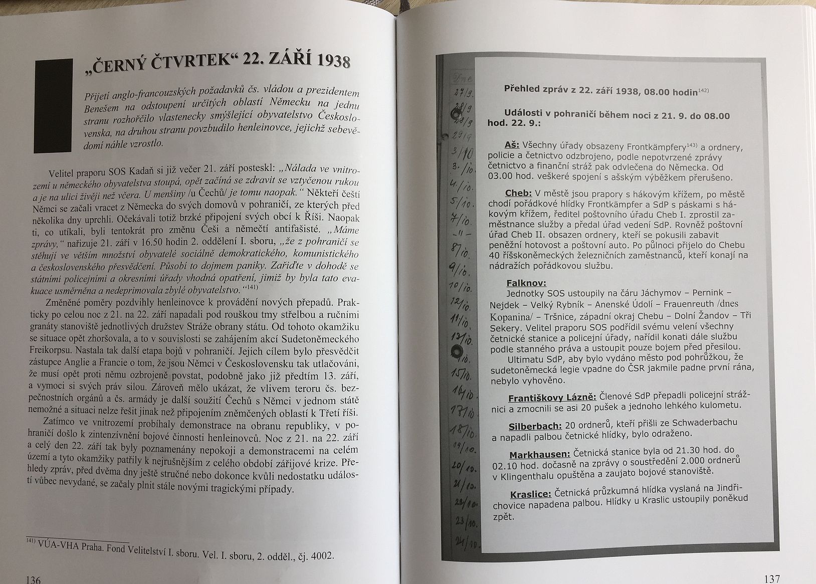 Pozorného čtenáře zaujme ještě jedna pasáž. Tyká se změny postoje ČS armády po vyhlášení branné pohotovosti státu. Především získalo pod přímý vliv prapory SOS. Změna vedení se promítla do radikálního obratu postupu vůči ordnerským bojůvkám. Na krátkou chvíli skočilo období politicky alibistických instrukci. Z druhé strany se ovšem vojsko prioritně změřilo na hlavní obranné postavení. Začalo stahování posilových prostředků z pohraničí. Vyjma asistenčních oddílů, které byly vyčleněny už od začátku. Armáda nechtěla plýtvat bojový potenciál útvarů na území plném nepřátel. SOS, četnictvo a finanční stráž tak opět nesly hlavní tíhu střetů, tentokrát s organizovaným sudetoněmeckým freikorpsem. Pozoruhodné jsou též úvahy ohledně možnosti vystěhování poněmčených obcí za hlavním obranným postavením. Dle publikace se tím například štáb armádního generála Sergeje Vojcechovského začal vážně zabývat.