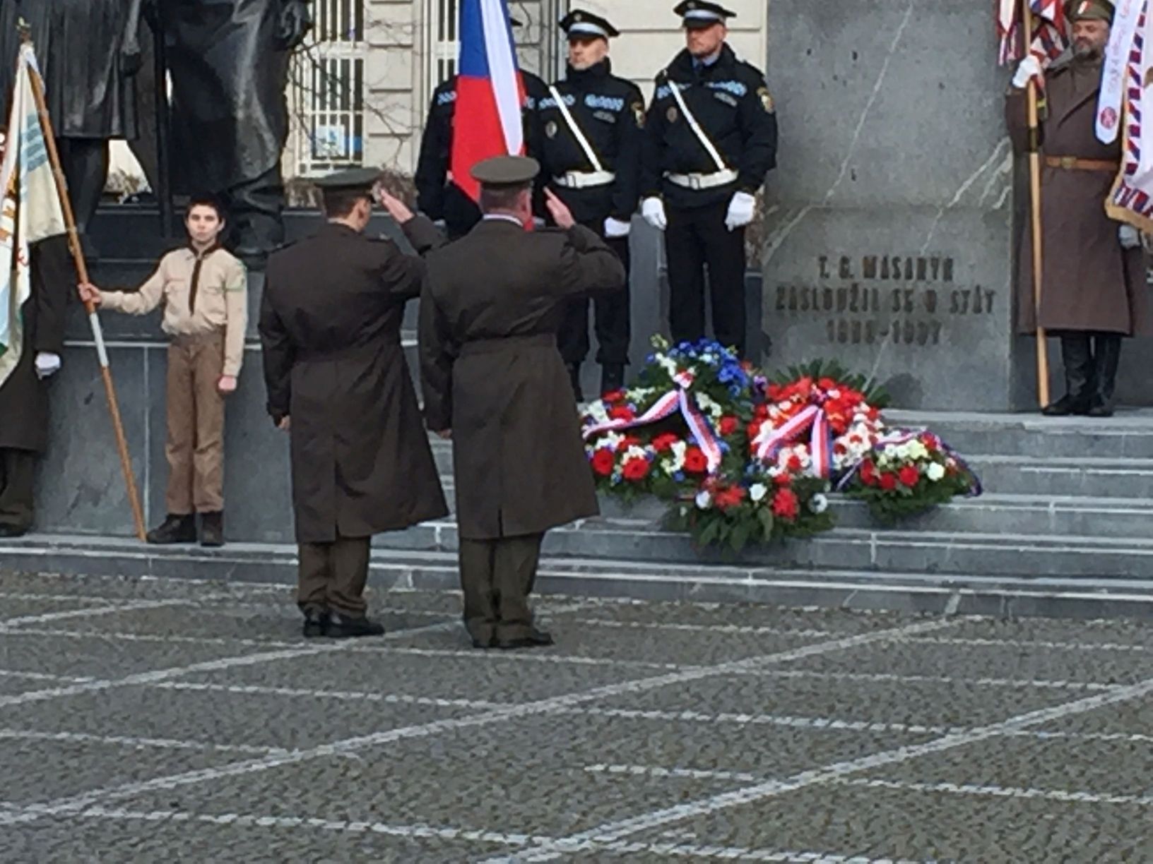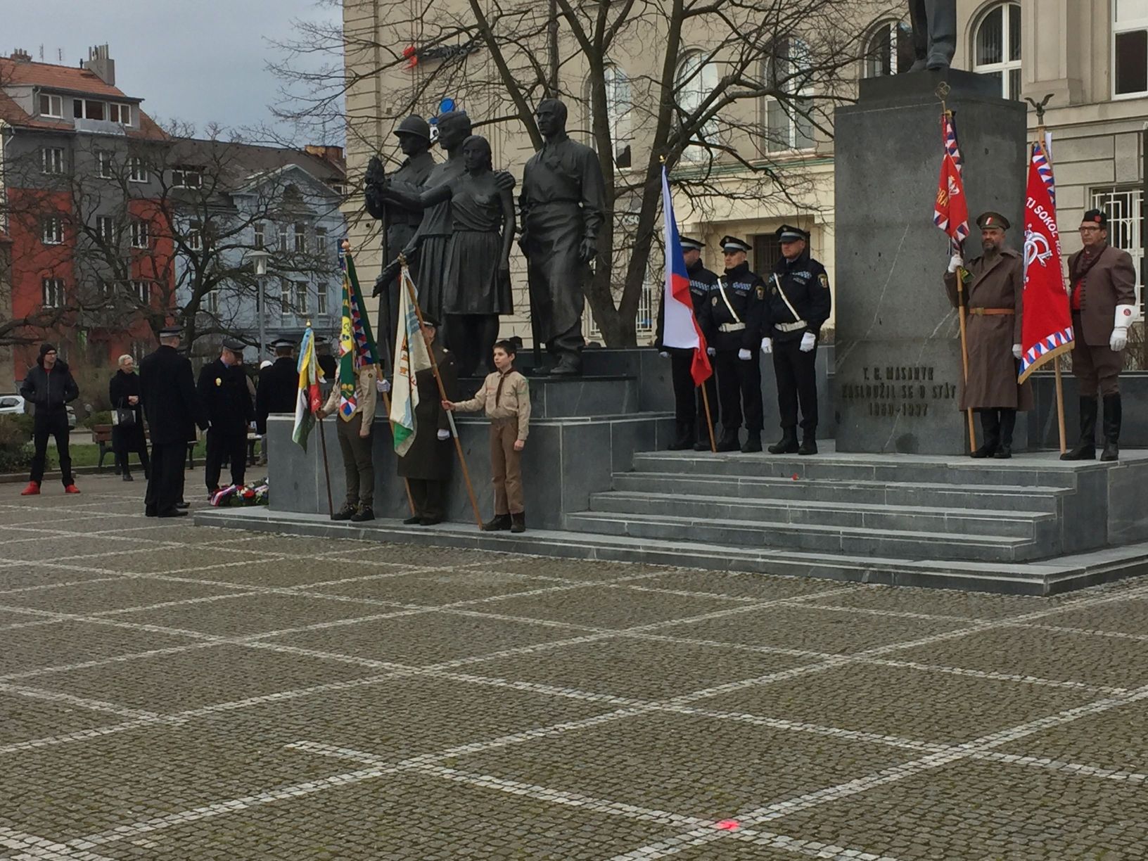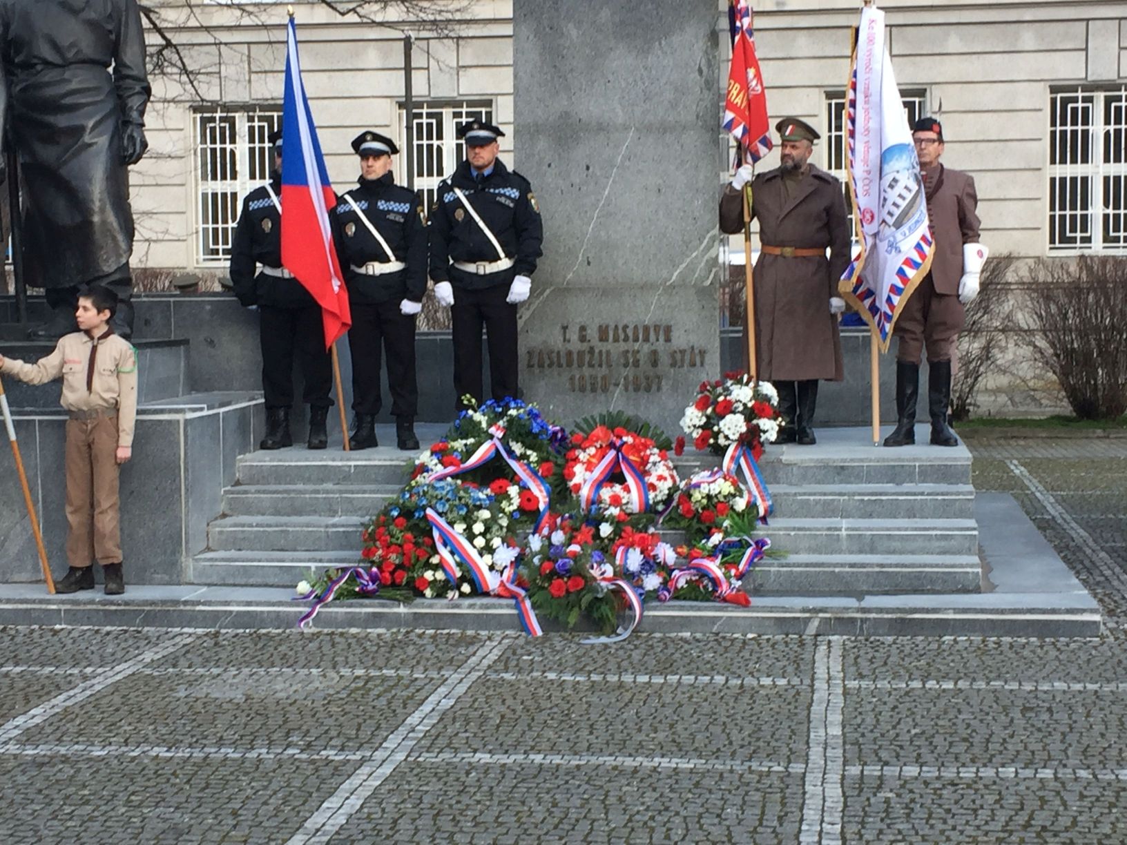 Praporečníci u pomníku T.G.Masaryka.