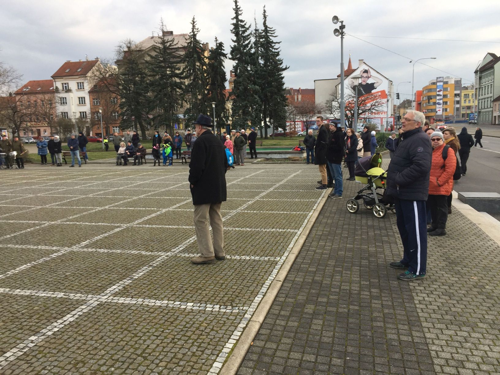 Diváci u Klatovské třídy. |