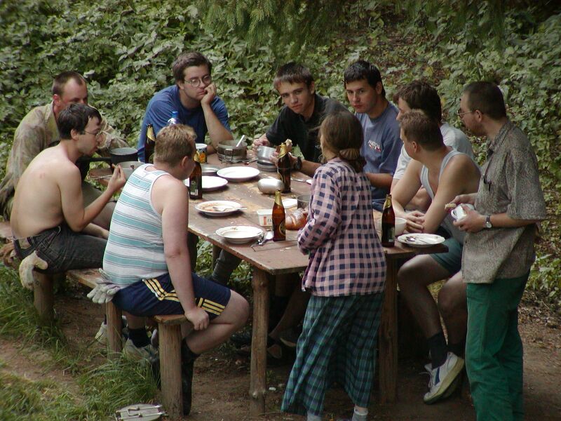 Pak vyrazilo několik odvážlivců za očistou do ledového proudu řeky Moravy. Smytí celodenního potu bylo před plánovanou návštěvou místní hospody příjemné. Bohužel, v té chvíli, se k nám štěstí otočilo zády. Zpráva o nečekaném uzavření hospůdky přinesla jen zklamání. Večer jsme tedy strávili u ohně s tím, co dům dal.