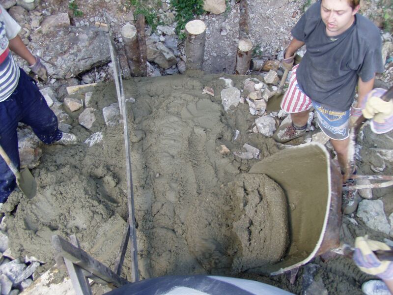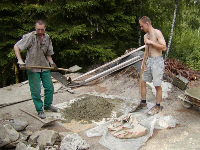 Nakonec se ukázalo, že dovezený beton nestačil a muselo ještě několik koleček namíchat přímo na místě.