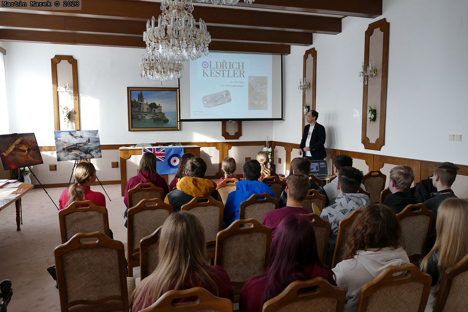 Hlavní součástí programu byla přednáška místního badatele pana Kamila Kosnara. S ohledem na počet účastníků jí provedl celkem třikrát. Poutavým přednesem seznámil posluchače s životními osudy Oldřicha Kestlera, výsledky svého bádání i modely, jimž jako předloha sloužila vojenská služba O.Kestlera. Po přednášce neúnavně pokračoval ve výkladu nad dokumenty a dalšími artefakty. Hodně času věnoval zapálené diskusi s příchozími.