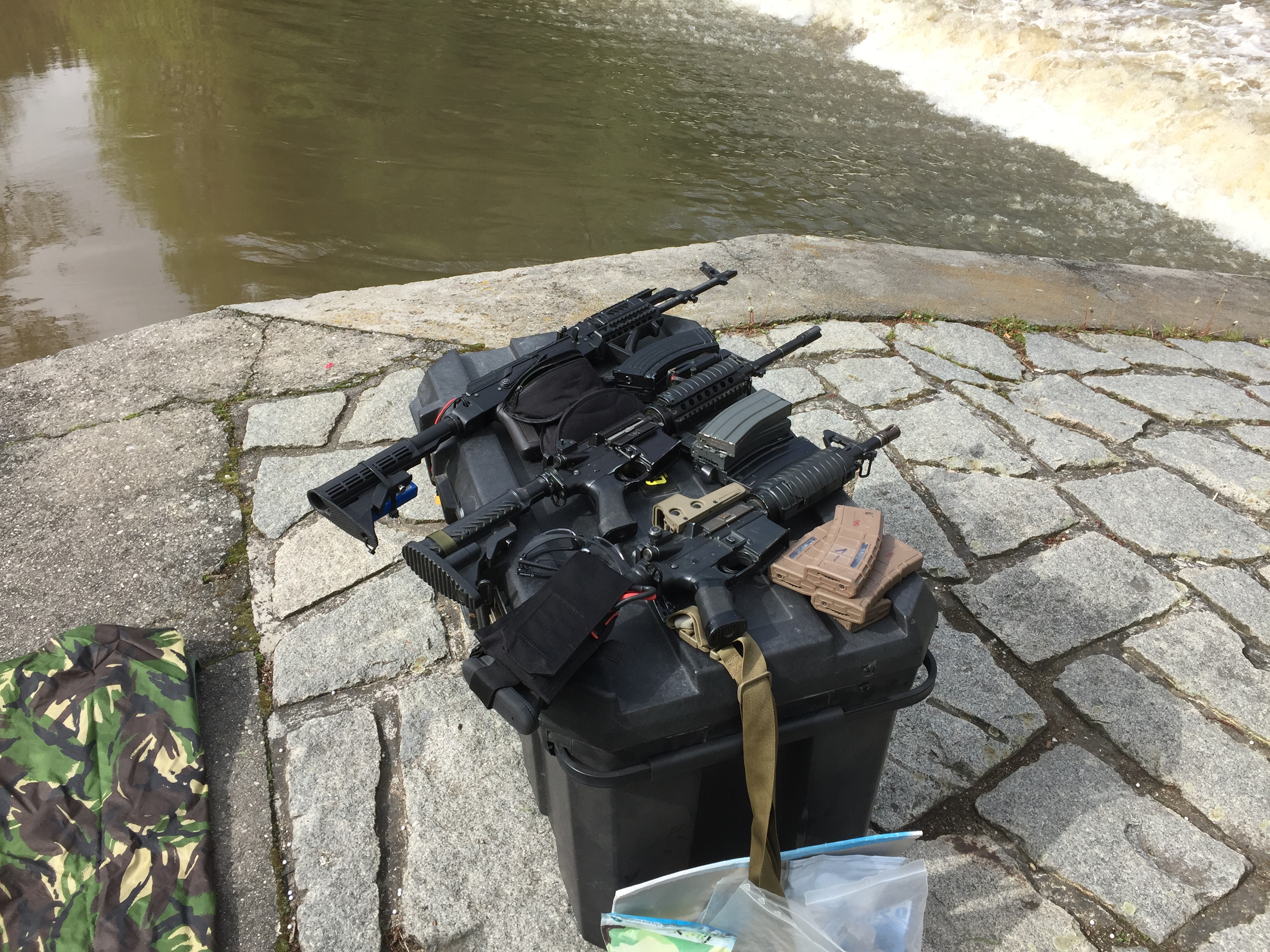 Airsoftové zbraně připravené pro soutěžící ve střelbě.(MM)