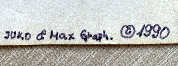 V pravém rohu se nachází pro tato dílka poměrně nezvyklá věc. Je jím značka autora, rok a dokonce copyright. Přesněji řečeno JUKO & Max Graph. Kdo je uvedený autor již lze dnes obtížně určit. Podle vyvedené značky můžeme odhadnout, že popisovaná kresba nebyla jeho jedinou produkcí pro vojáky útvarů dislokovaných na letišti Plzeň-Bory.