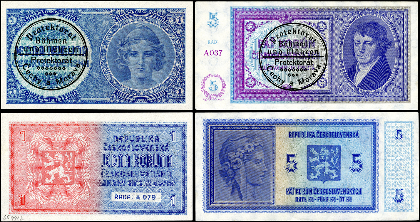 *4- https://upload.wikimedia.org/wikipedia/commons/3/34/BOH%26MOR-1-Protectorate_of_Bohemia_and_Moravia-1_Koruna-%281939%29ND.jpg + https://upload.wikimedia.org/wikipedia/commons/9/9a/BOH%26MOR-2-Protectorate_of_Bohemia_and_Moravia-5_Korun_%281939%29ND.jpg